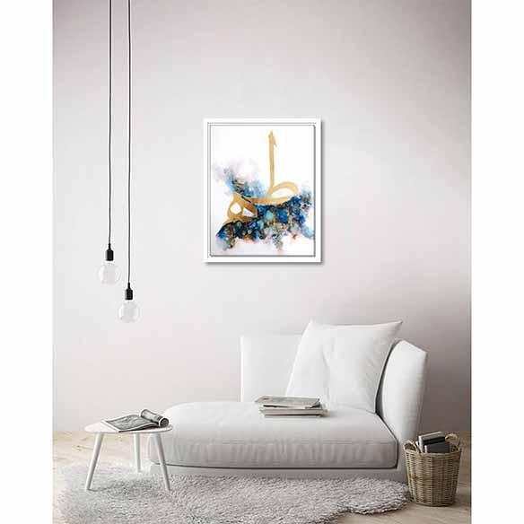 Canvas stretched on 2.5 cm deep wood or stretched & framed with 1.8 x 3.5 cm black L-shaped floating frame.