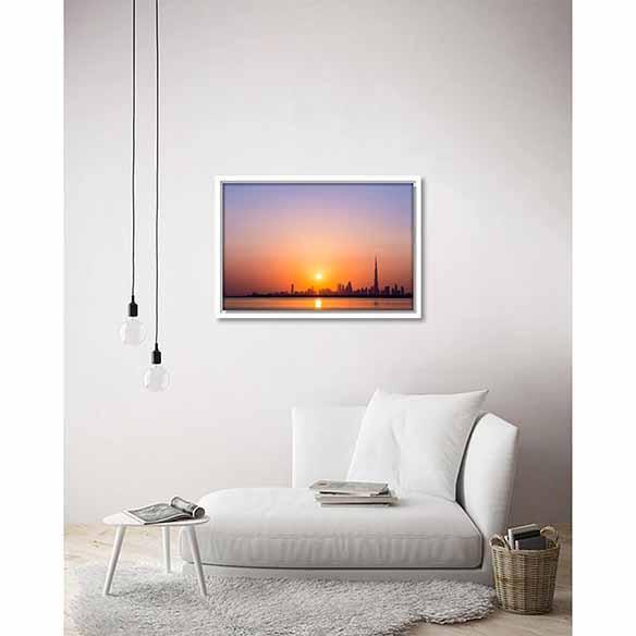 Canvas stretched on 2.5 cm deep wood or stretched & framed with 1.8 x 3.5 cm black L-shaped floating frame.