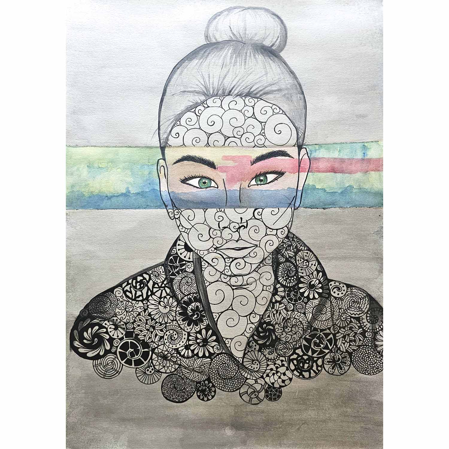 - Pencil/Pen and Watercolor on Paper