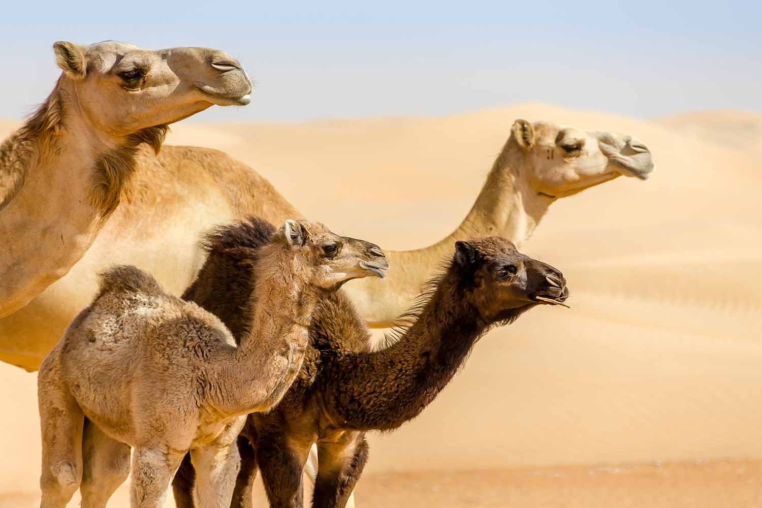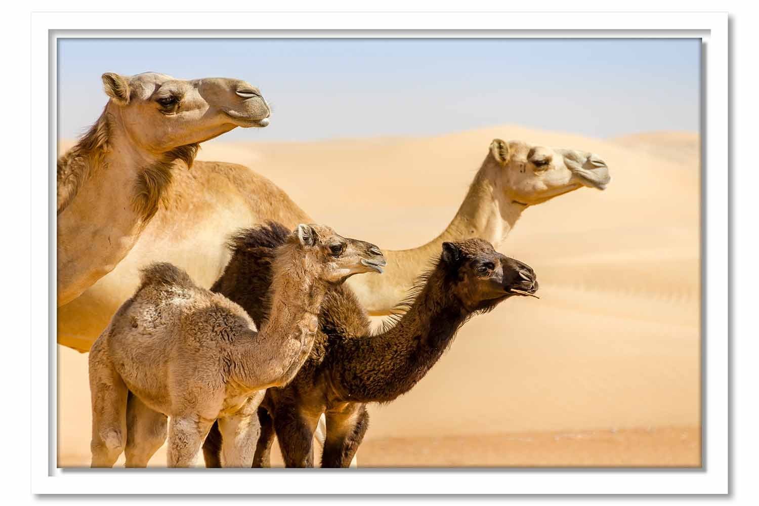 Picture by LOTTA AXING: A free roaming camels family look in the same direction, the two calves appearing well protected by their parents.
