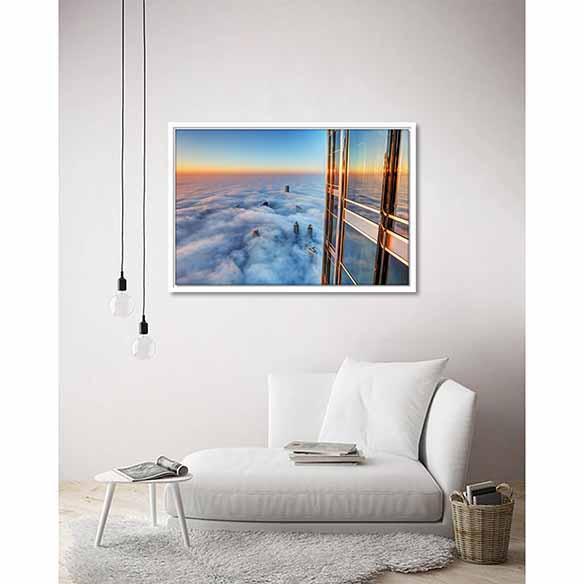 Canvas stretched on 2.5 cm deep wood or stretched & framed with 1.8 x 3.5 cm black L-shaped floating frame.