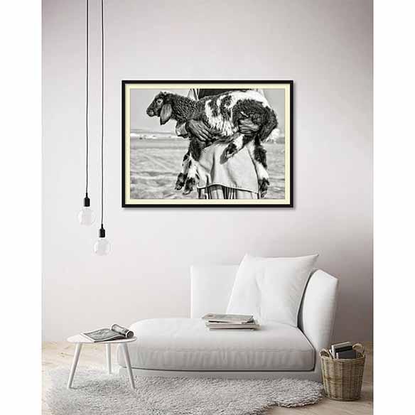 Canvas stretched on 2.5 cm deep wood or stretched & framed with 1.8 x 3.5 cm black L-shaped floating frame.