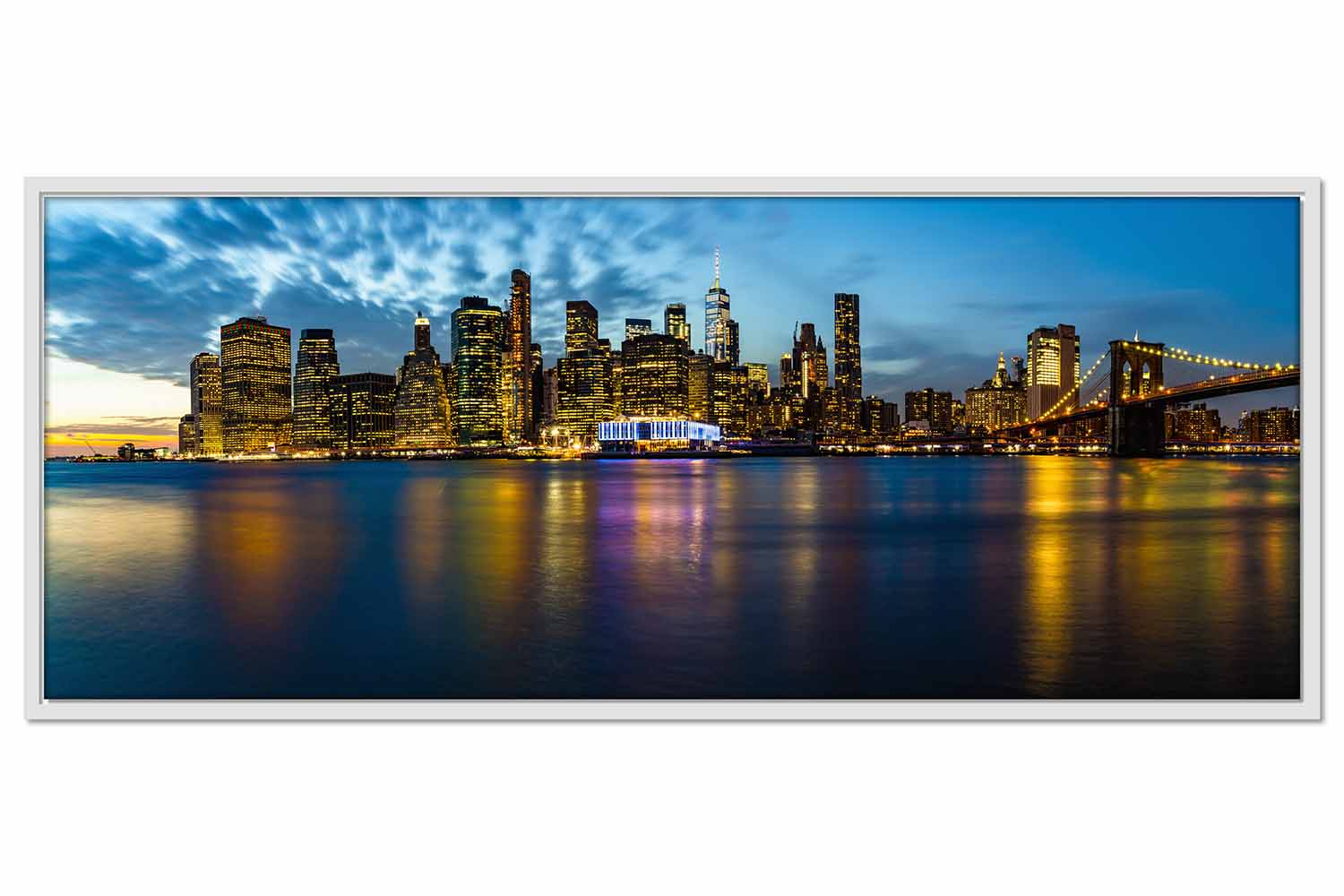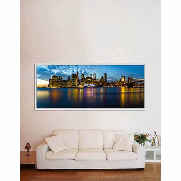 Canvas stretched on 2.5 cm deep wood or stretched & framed with 1.8 x 3.5 cm black L-shaped floating frame.