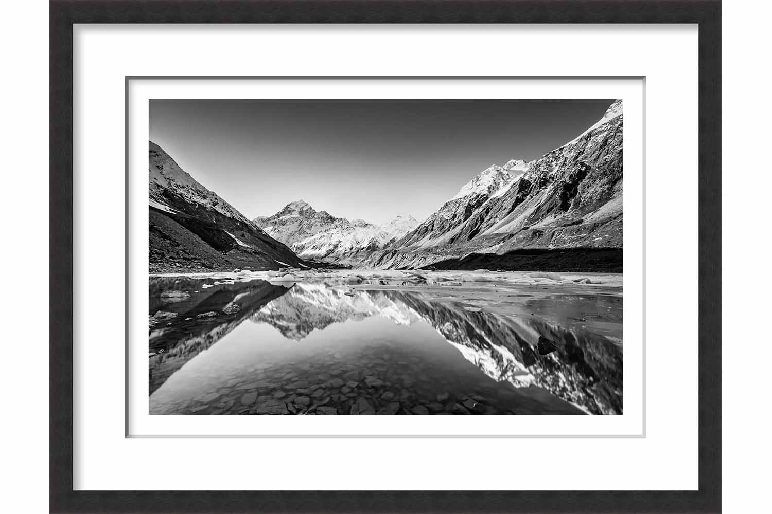 Reflection of Mount Cook in Monochrome, NZ