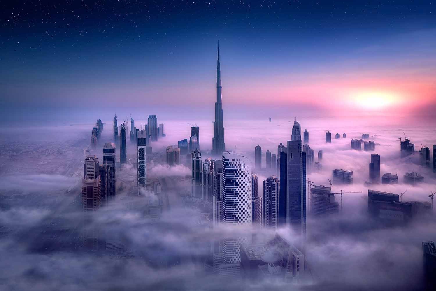 "Wherever you point your camera in Dubai, there's always one landmark which dominates the skyline; Burj Khalifa. It is the center of every cityscape composition and most likely one of the most photographed structured on this planet. Combined with fog, a rare occurrence which completely transforms the look of the city, elevates this capture into the realm of fiction. Dramatic sunrise, futuristic skyline and a special weather phenomenon; this is one of those scenes every cityscape photographer hopes to capture one day."
